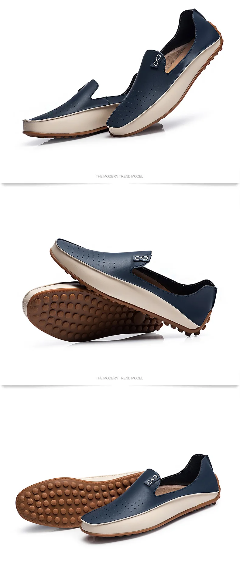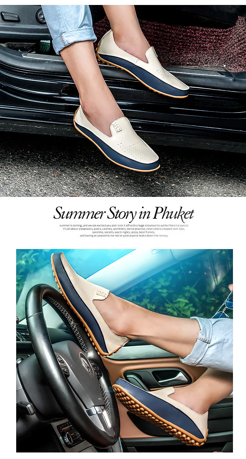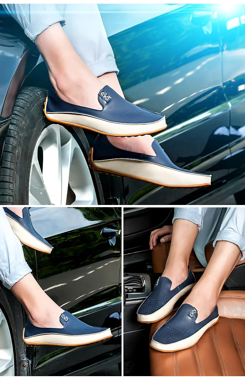Summer Blue Low Flat Shoes Loafers Men Ultra-Light Classic Driving Shoes Male Size 47 Soft Leather Boat Shoes Men's Casual Shoes