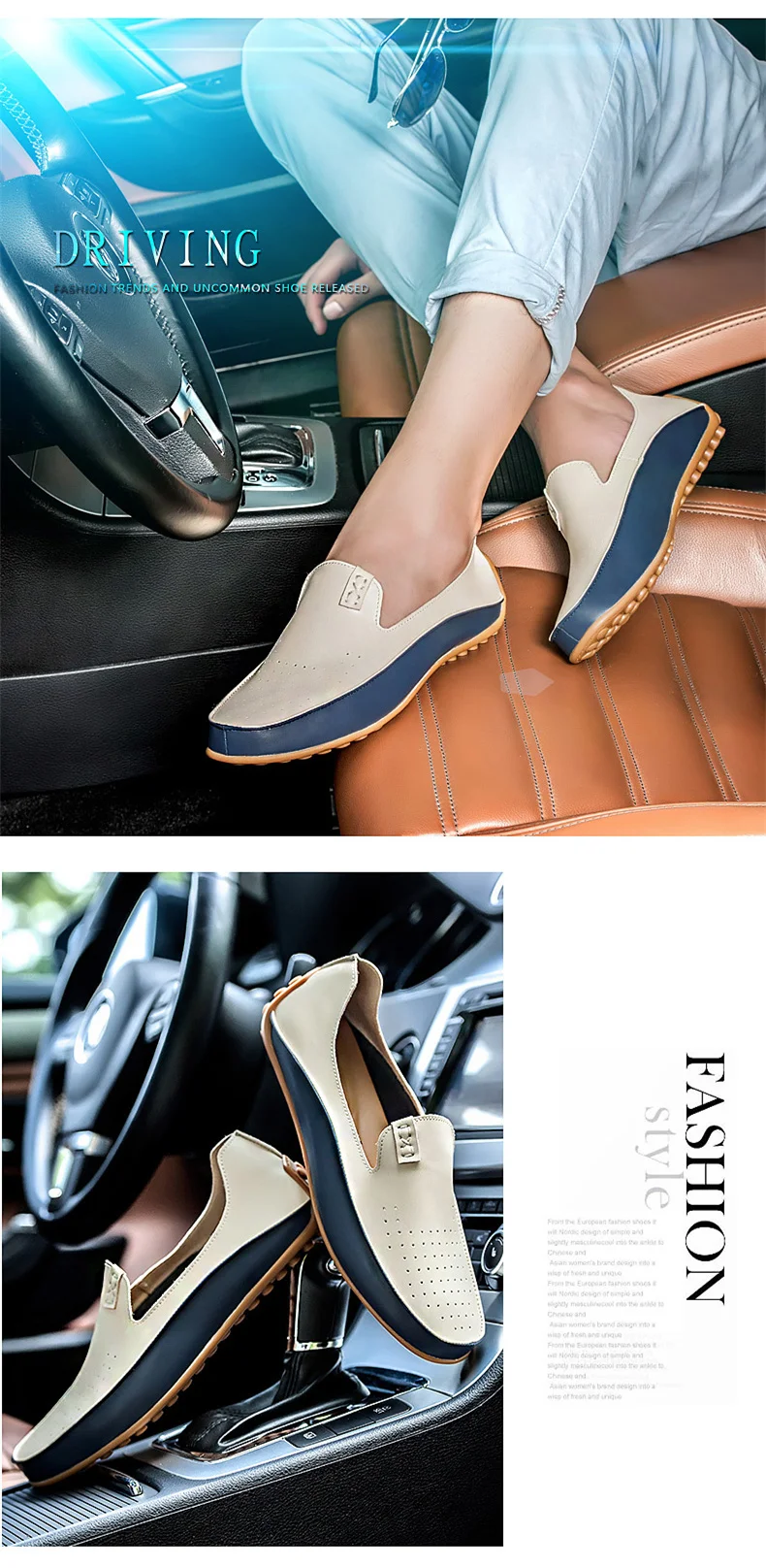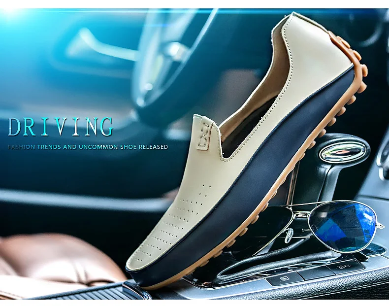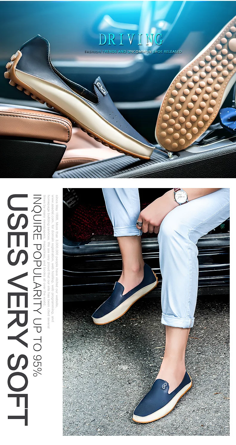 Summer Blue Low Flat Shoes Loafers Men Ultra-Light Classic Driving Shoes Male Size 47 Soft Leather Boat Shoes Men's Casual Shoes