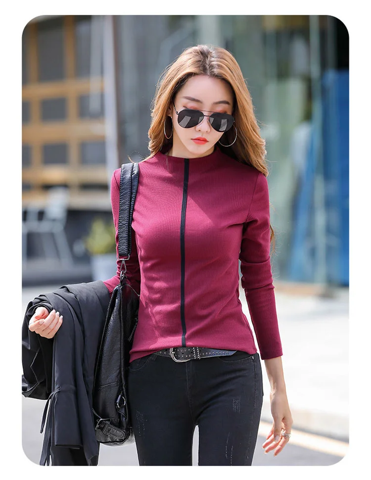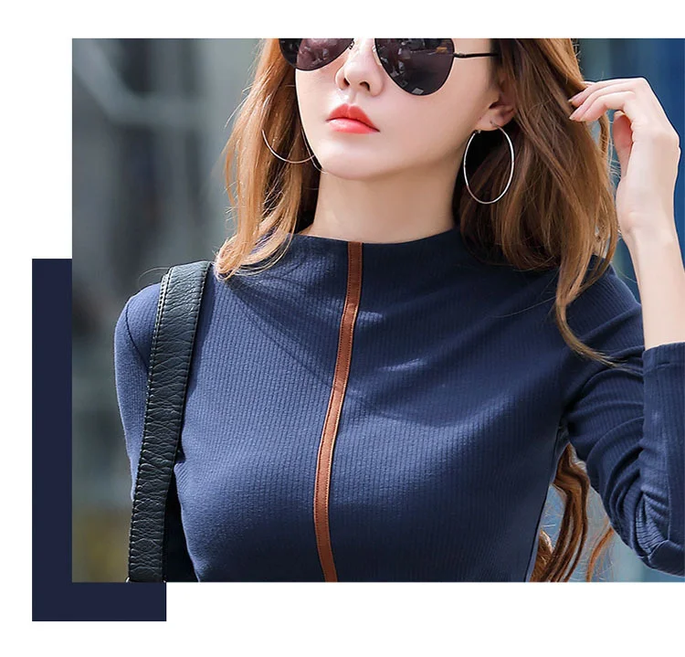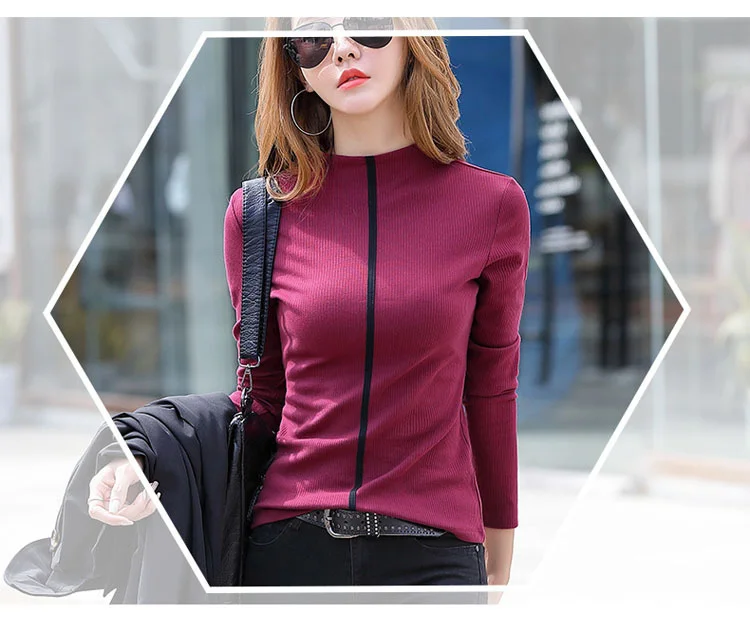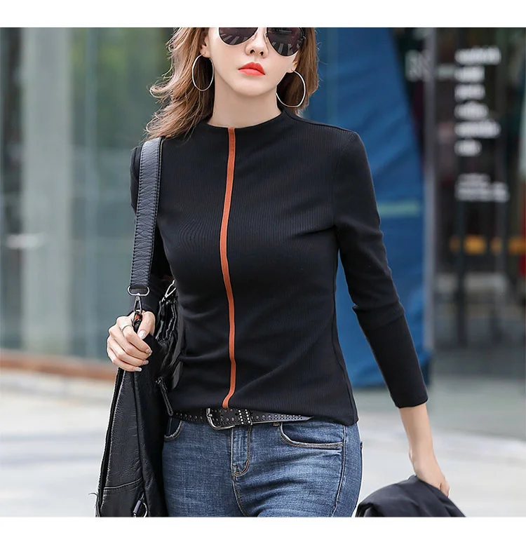 Autumn Winter Elastic Cotton Casual T Shirt Women O-neck With Striped Woman T-shirts Slim Basic Long Sleeve T-shirts 3XL