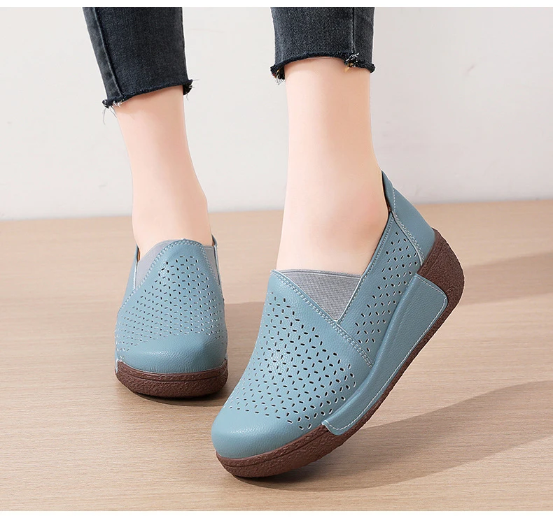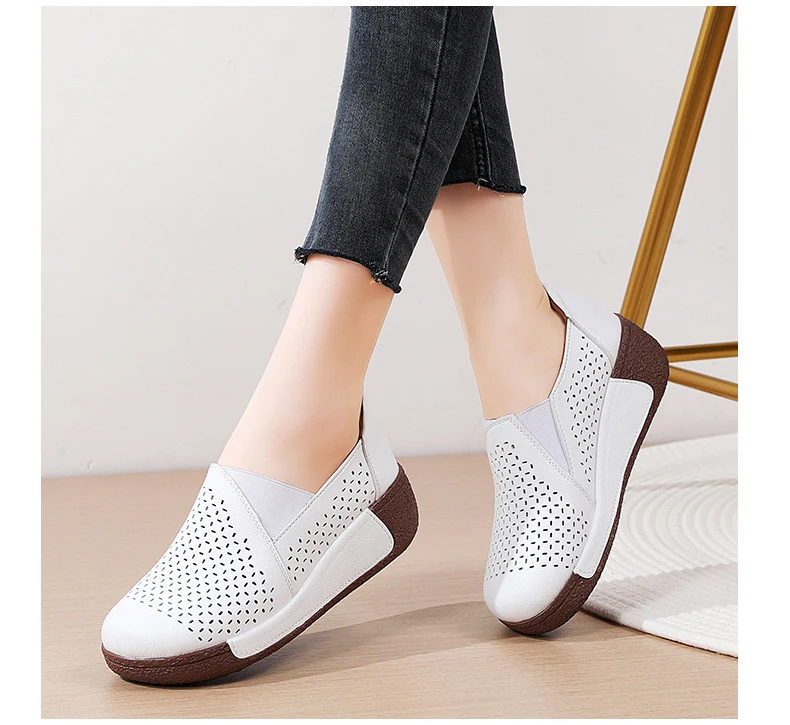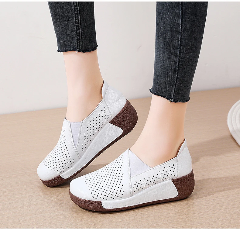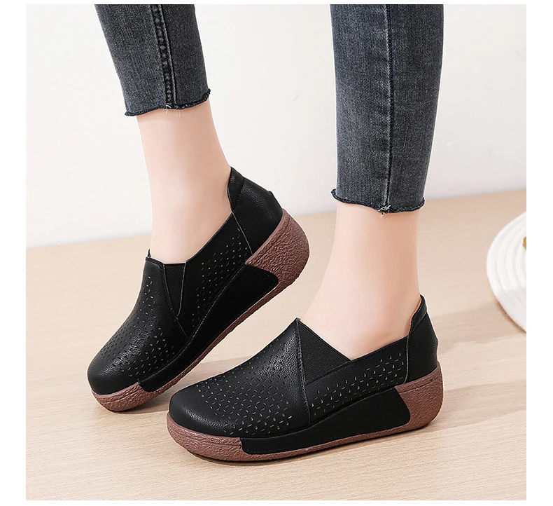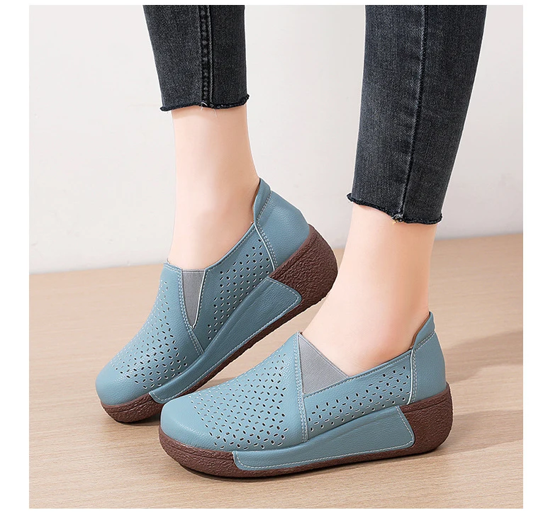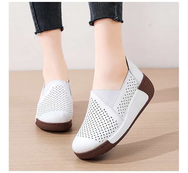 Summer Breathable Women's Shoes Flat Platform Ladies Loafers Leather Wedge Female Sneakers Moccasins Slip On Casual Shoe Women