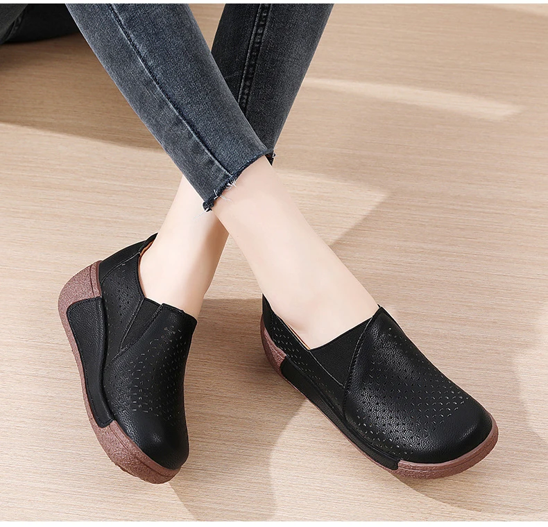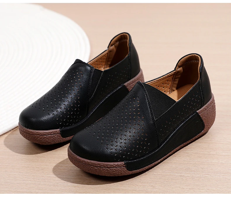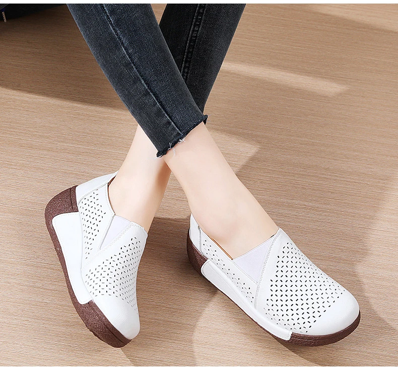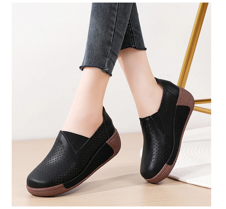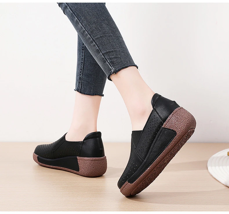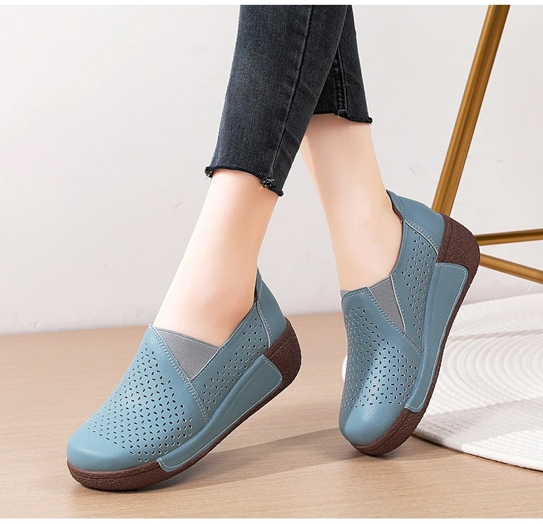 Summer Breathable Women's Shoes Flat Platform Ladies Loafers Leather Wedge Female Sneakers Moccasins Slip On Casual Shoe Women
