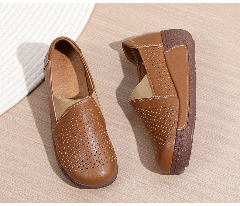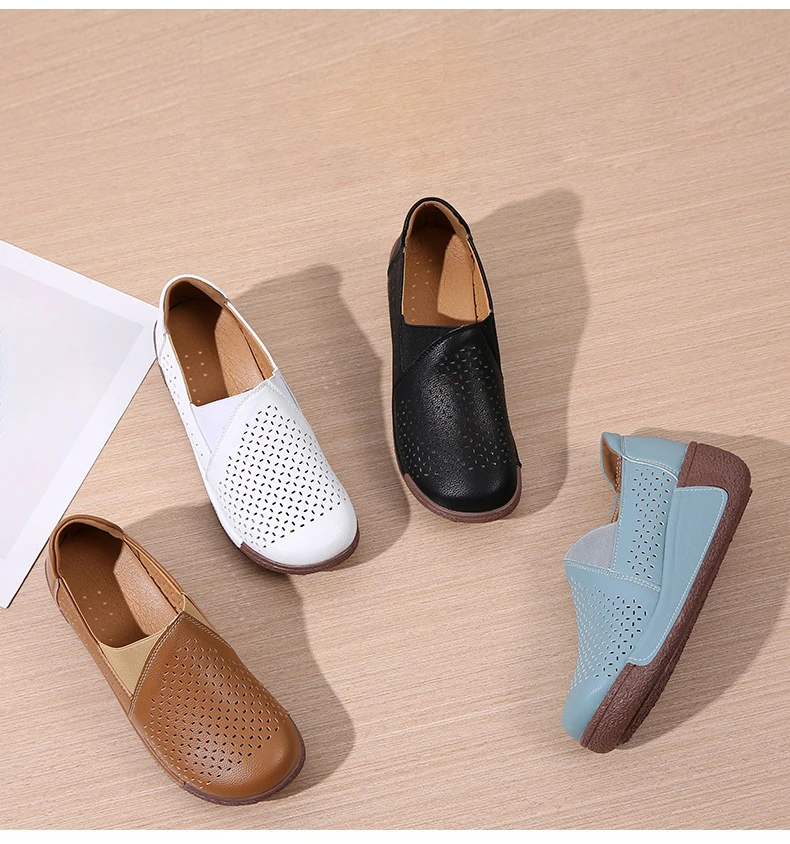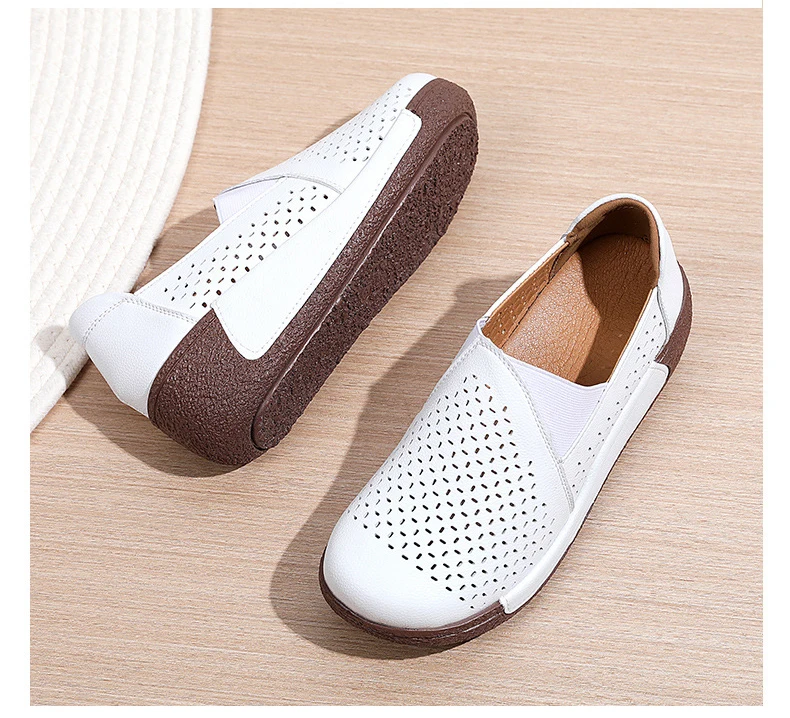 Hole Women Flats: Elegant Genuine Leather Shoes Woman